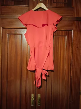 Elegante blusa con volantes y cinturón. - Diseño cruzado. - Mangas cortas con volantes. - Cinturón para ajustar a la cintura.