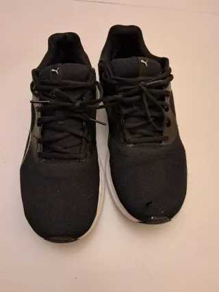 Zapatillas deportivas Puma en color negro. Perfectas para el día a día o para hacer deporte. Una tiene un pequeño agujero , están usadas pero aún las queda vida . De hay el precio - Diseño moderno y cómodo. - Logo de Puma visible.