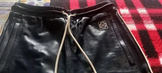 Pantalón de cuero con un diseño moderno y elegante. - Detalle de logo de Loewe bordado. - Cordón ajustable en la cintura. - Ribete lateral en contraste.