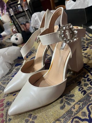 Zapatos de tacón blancos con pedrería