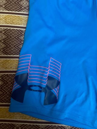 Pantalón corto deportivo de la marca Under Armour. - Color azul vibrante. - Diseño con logo grande en contraste.