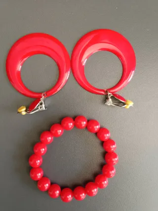 Conjunto de pendientes y pulsera estilo sevillana. - Pendientes grandes con clip. - Pulsera de cuentas. - Diseño llamativo.