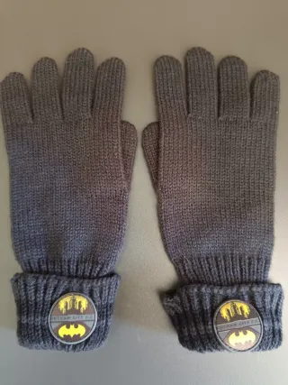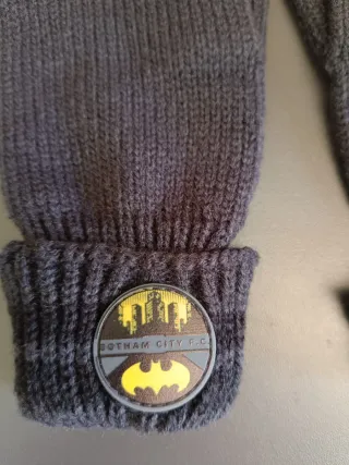 Conjunto de guantes de punto para niño con diseño de Batman. - Par de guantes de tejido. - Detalle circular con logo de Batman y Gotham City P.C.