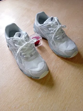 Zapatillas Asics Gel NYC en tonos grises y blancos. - Diseño deportivo. - Detalles de la marca en los laterales. - Cordones blancos. 👔🌟Calidad suprema 💰💲Precio negociable ✅👌Nuevo sin uso 🚐📦Envío disponible 📩💬Contáctame para dudas