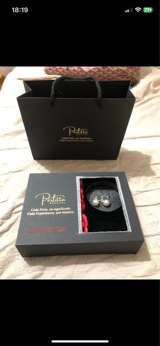 Elegantes pendientes de la marca Perlitta con perlas y detalles dorados. Presentados en su caja original. - Diseño clásico y sofisticado. - Perlas de alta calidad.
