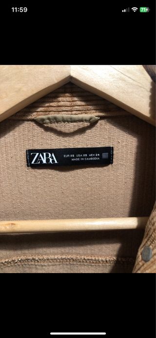 Chaqueta de pana de la marca ZARA. - Diseño de corte recto. - Cierre de botones. - Dos bolsillos en el pecho. - Bolsillos laterales. - Cuello camisero.