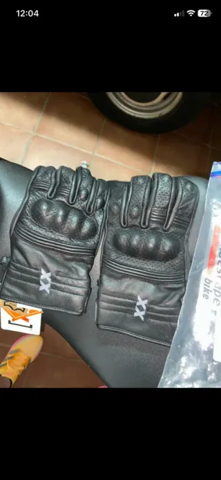 Guantes de moto de piel de la marca Tecnoescape. Son de color negro y talla L. - Diseño con perforaciones. - Detalle de XX en relieve. - Incluyen bolsa de plástico con etiqueta.