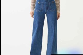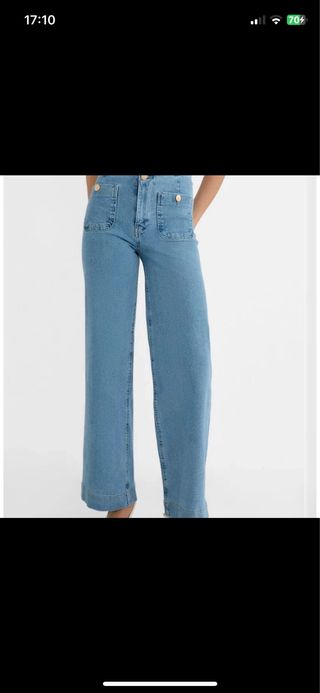 Vaqueros de Stradivarius, modelo D77. - Corte ancho. - Bolsillos delanteros con botones dorados. - Tiro alto.