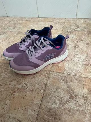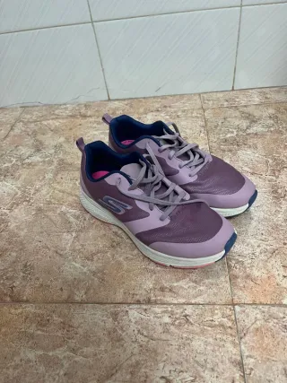 Zapatillas deportivas Skechers para mujer en tonos morados y rosas. - Diseño moderno y cómodo. - Cierre con cordones. - Detalle de logo en el lateral.