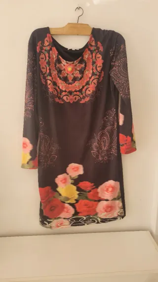 Vestido floral rosa y amarillo talla L