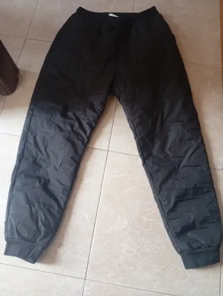 Pantalones de nieve negros, ideales para mantenerte abrigado. - Diseño acolchado. - Cintura elástica con cordón. - Puños ajustados en los tobillos.
