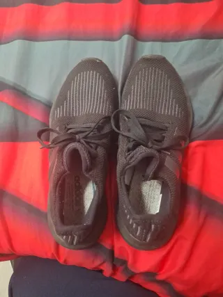 Zapatillas Adidas Swift Run J en color negro. Diseño moderno y cómodo. - Parte superior de malla transpirable. - Tres rayas características de Adidas en los laterales. - Suela de goma para mayor durabilidad.