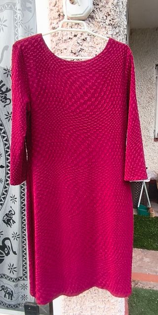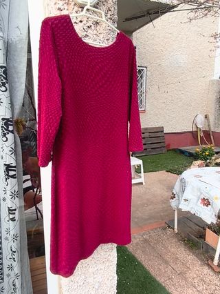 Vestido clásico, cómodo, ligero y elástico. En color burdeos con pequeños toques de hilos brillantes, ideal tanto para el día, cómo para una salida nocturna.