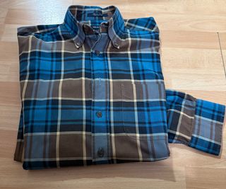 Camisa de cuadros para hombre de la marca Gap. Presenta un diseño clásico y versátil. - Cuadros en tonos azules y marrones. - Cuello con botones. - Bolsillo en el pecho. - Manga larga