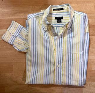 Camisa de manga larga con un diseño de rayas verticales en varios colores. Cuello abotonado. - Rayas en tonos azul, amarillo y verde. - Bolsillo en el pecho. - Puños con botones.