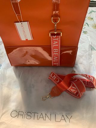 Bolso bandolera con un diseño moderno y llamativo. - Correa ajustable con detalle de logo. - Acabado brillante.