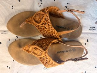 Sandalias de verano de la marca Inside en color marrón. Perfectas para el día a día. - Diseño con tiras tejidas. - Cierre de hebilla. - Suela cómoda.