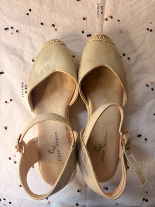 Sandalias doradas esparto cuña