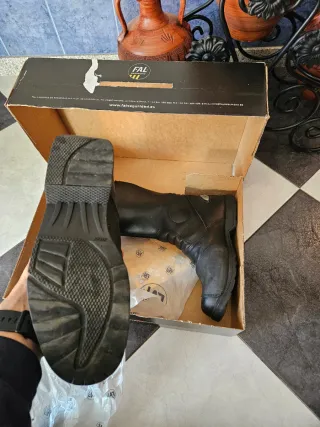 Botas de moto de la marca FAL Seguridad. Fabricadas en cuero negro y con detalles de alta calidad. - Cierre con cremallera y velcro. - Suela de goma antideslizante. - Membrana GORE-TEX para impermeabilidad. - Detalles reflectantes para mayor visibilidad.