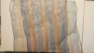 Pañuelo fular con un diseño alegre y colorido. Ideal para complementar cualquier atuendo. - Estampado de flores. - Diseño con rayas verticales -Tiene unas manchitas como se aprecia en la última foto