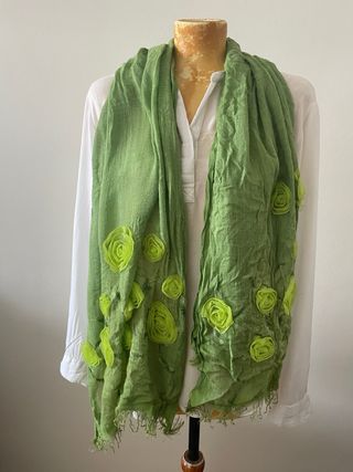 Fular de viscosa con un bonito diseño de flores. - Color verde vibrante. - Adornado con aplicaciones de flores. - Textura ligera y fluida. 158 x 56cm