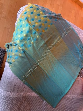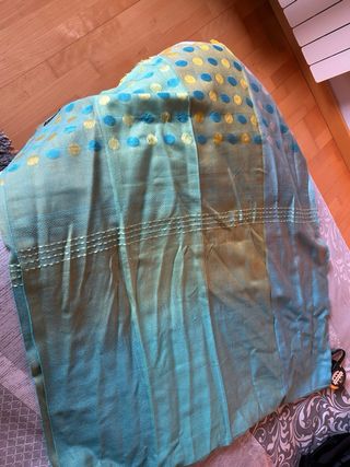Fular de tela ligera con un tono azul verdoso, más bien verde agua marina, que fue comprado en una tienda local. Está nuevo sin estrenar, en su embalaje original. - Material: tela fina y vaporosa. - Ideal para eventos.