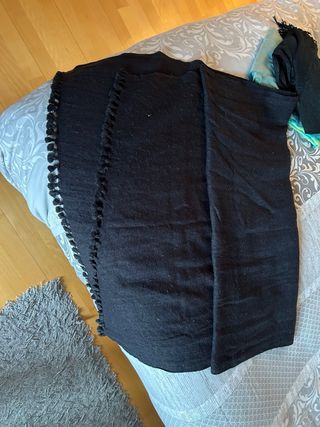 Precioso fular o bufanda de tacto suave y acabado con flecos y pompones. - Diseño elegante y llamativo. - Ideal para complementar cualquier atuendo. Usado solo una vez