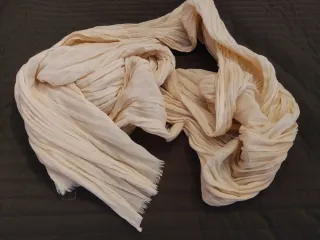 Fular de tela suave con un diseño plisado. - Textura ligera y vaporosa. - Acabado con flecos en los extremos.