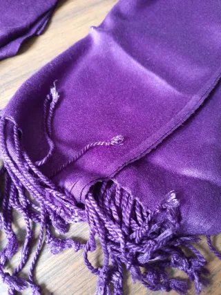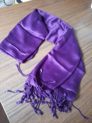 Elegante fular con un bonito color morado y detalle de flecos en los extremos. Es un accesorio versátil que puede complementar diversos atuendos. - Suave al tacto. - Diseño con flecos.
