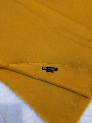 Fular de gran tamaño de Zara en un tono amarillo mostaza precioso. Es ideal para el invierno o entretiempo ya que es amplio, abrigado y tiene un tacto muy suave y gustoso. •Acabado con pequeños flecos deshilachados en los bordes. • Etiqueta de marca visible. • Muy versátil: se puede llevar como bufanda o tipo chal sobre los hombros. Perfecto para dar un toque de color a abrigos negros, grises o vaqueros. Hago envíos rápidos. 📦 #zara #fular #bufanda #mostaza #accesorios #winter #moda #mustard