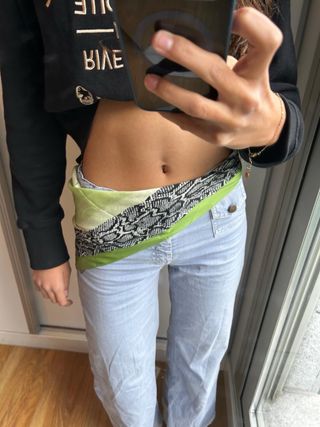 Pañuelo multiusos con un diseño llamativo. - Estampado de serpiente en negro. - Tonos verdes vibrantes. - Es de una tienda local - Como nuevo, nunca usado - Acepto ofertas - envíos en 24/48 horas