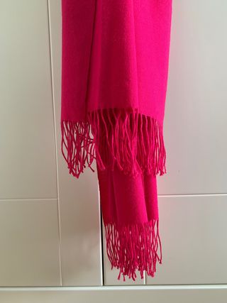 Fular suave y llamativo en un vibrante tono rosa. Perfecto para añadir un toque de color a cualquier atuendo. - Diseño con flecos en los extremos. - Material agradable al tacto.