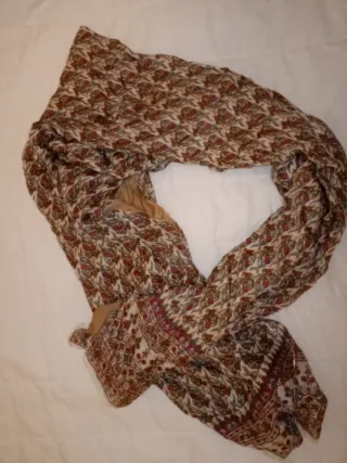 Fular con un bonito y colorido estampado Fácil de combinar, tacto muy suave Usado, pero está en buen estado Composición 95% lana, 5% seda Medidas: Largo 178 cm; Ancho 54 cm LAS FOTOS FORMAN PARTE DE LA DESCRIPCIÓN Precio 16€ Todos mis artículos están cuidadosamente seleccionados y están en excelentes condiciones. Precio no negociable. No se reserva Más artículos en mi perfil. Si tienes alguna duda, pregunta o necesitas fotos o información adicional, escríbeme sin dudarlo. Responderé lo antes posible sin ningún problema.