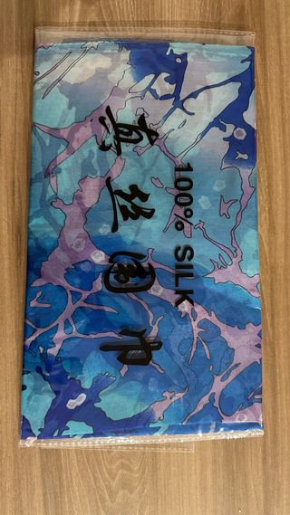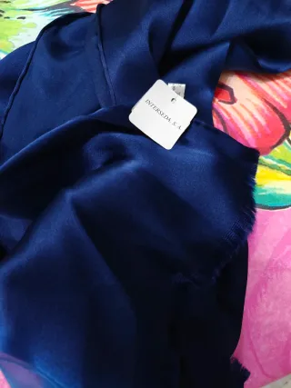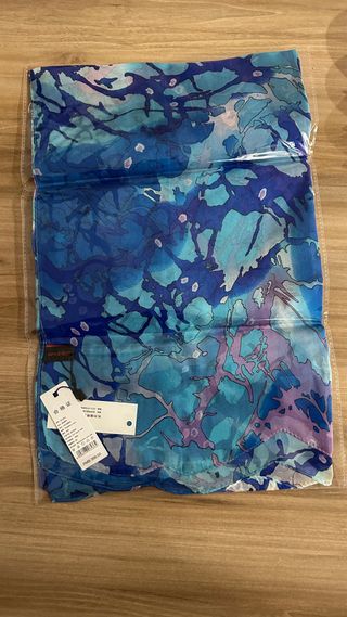 Elegante fular de seda con un diseño abstracto en tonos azules y morados. Es un accesorio versátil y ligero. - Material: 100% Seda - Diseño: Estampado abstracto - Tacto suave - Valor en el mercado 399 yuanes chinos, al cambio son unos 48€