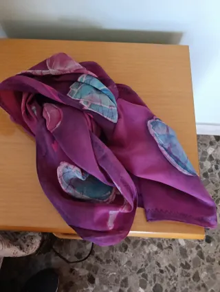 Elegante fular o chal de seda, perfecto para complementar cualquier atuendo. comprado en Tailandia hace años medidas 79 x 2 metros - Material: Seda. - Color: Tonos rosas y rojos.