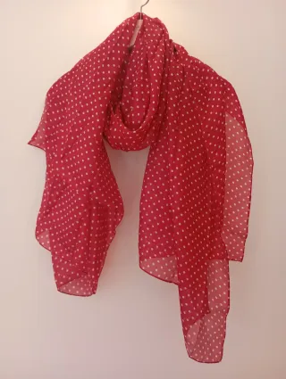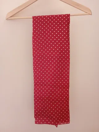 Fular de seda con un bonito estampado de lunares. - Material: Seda. - Diseño: Lunares blancos sobre fondo rojo.