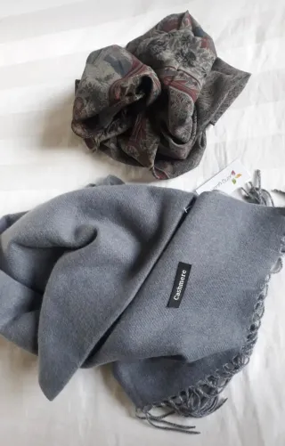 Dos fulares grandes nuevos de seda y cashmere.