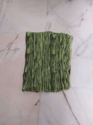 Pañuelo fular, tela estilo arrugada en tonos verdes. Es alargado y apenas usado 💚