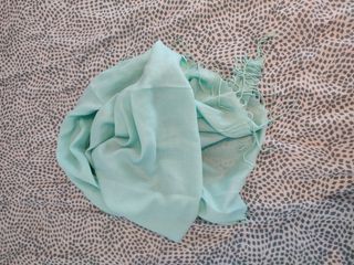 Fular de tejido ligero con un bonito detalle de encaje en uno de los bordes. - Color verde menta. - Tacto suave y agradable. - Diseño con flecos en el borde.