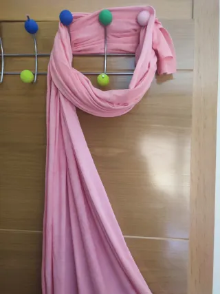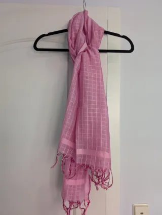 Fular nuevo. De un tejido muy fino, ligero y agradable. Color rosa pastel con blanco.