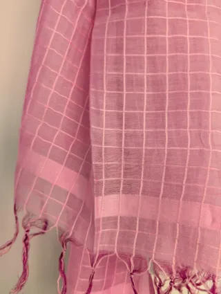 Fular con un diseño a cuadros en tonos rosas y lilas. Tiene un tacto ligero y suave. - Diseño a cuadros. - Flecos en los extremos.
