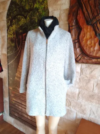 Abrigo jaspeado en blanco y negro de cierre cremallera, forrado y con bolsillos laterales. Es muy agradable de llevar, no pesa. Marca talla M pero es muy válido también para L. Medidas: hombros 42cm, largo 80cm, distancia axilas 52cm, caderas 56cm REGALO el fular negro #mhorgana38m40l #mhorgana42xl44xxl -30-