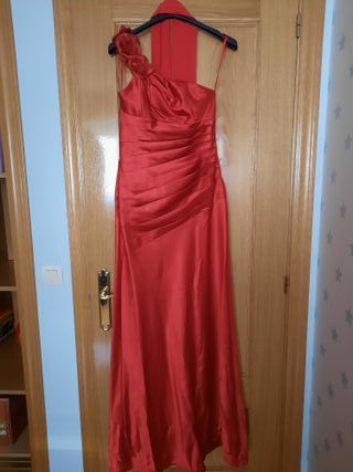 Bonito vestido rojo de fiesta largo, con pedrería, puesto una sola vez para una boda de tarde noche, con fular ancho para echar por los hombros, espalda abotonada. Comprado en Novias María Luisa. T. 40, 42, está llevado a tintorería, es precioso, no se distingue bien en la foto ni el color ni la tela, valio 1000€.CHOLLO!!! 265€