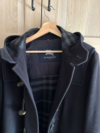 Abrigo largo de la marca Burberry con forro a cuadros.Talla 50 Azul marino - Cierre con botones. - Bolsillos frontales. - Capucha. - Diseño clásico.