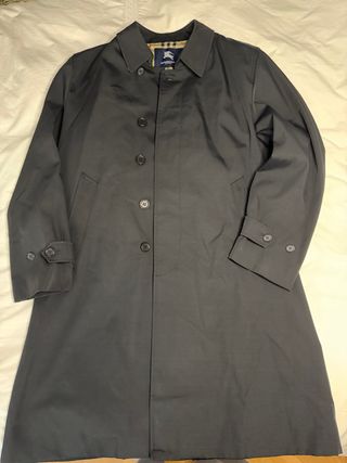 Clásica gabardina Burberry en color azul marino original talla S slin tít . Una prenda atemporal y elegante. está usada pero muy bien conservada su precio ronda los 700 euros la vendo por 100 - Diseño de doble botonadura. - Cinturón ajustable. - Cuello con solapas. - Bolsillos laterales. De hombro a hombro 38 cm de sobaco sobaco 41 cm