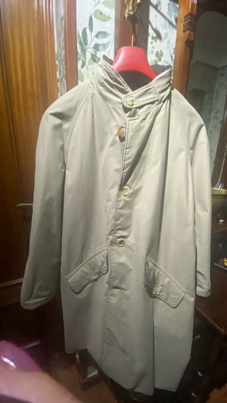 Preciso chubasquero vintage de algodón y poliéster. Gales, con Medidas 110 Cms de longitud y 47 de hombros.