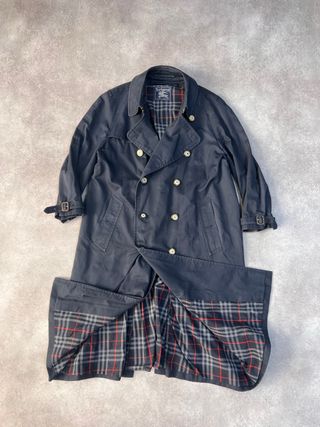 Clásica gabardina vintage de Burberry. Un diseño atemporal con el icónico forro de cuadros. - Diseño largo. - Cierre de botones. - Bolsillos frontales.