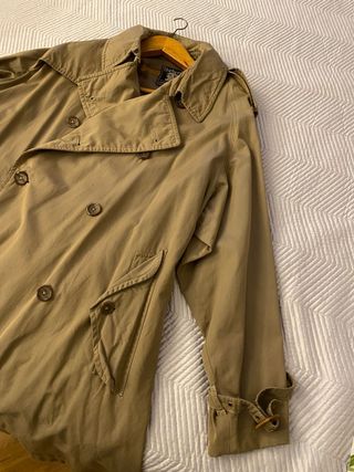 Chaquetón tipo gabardina corta de burberry color cayó talla 40 con pliegues en las mangas como se aprecia en la última foto.