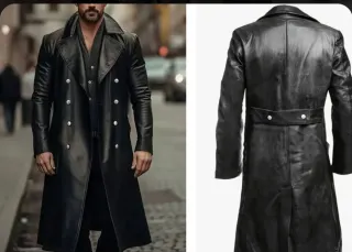 Chaqueta de cuero genuino con un diseño clásico. - Material: Cuero genuino. - Cierre de doble botonadura. - Cuello solapa. - Puños ajustables. 🖤 chaqueta Larga de Cuero Vintage El Clásico que Nunca Muere: Gabardina de Cuero Genuino Abriga tu estilo con una pieza atemporal. Presentamos esta espectacular Gabardina de Cuero, una prenda que combina la silueta elegante del clásico trench coat con la actitud audaz del cuero genuino. ✨ Características Destacadas: Piel Genuina de Calidad: Suave, resistente y con un acabado envejecido único que solo mejora con el tiempo. Diseño Icónico: Doble botonadura, cuello de solapa ancho 45 cm sisa