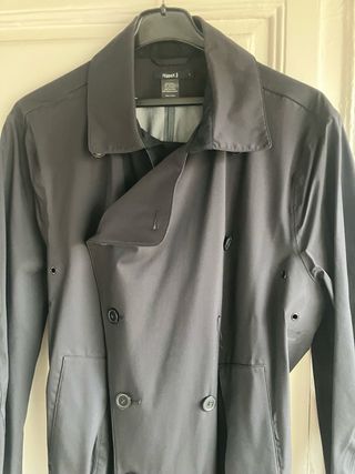 Gabardina clásica de Mango en color negro/azul dice que es impermeable, no del todo lo es, fue comprada en mango para un evento alrededor de 100€